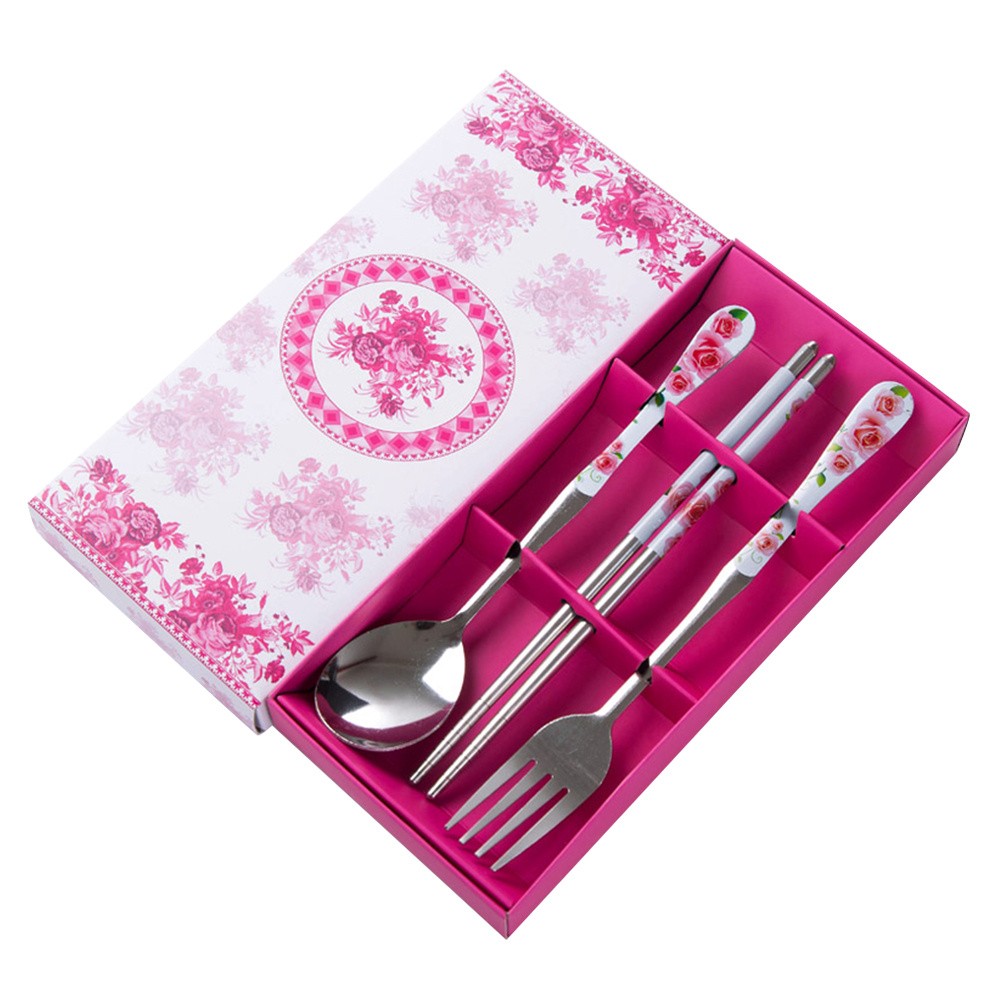 3 PCS Chopsticks and Spoons Fork Tableware Stainless Steel Cutlery